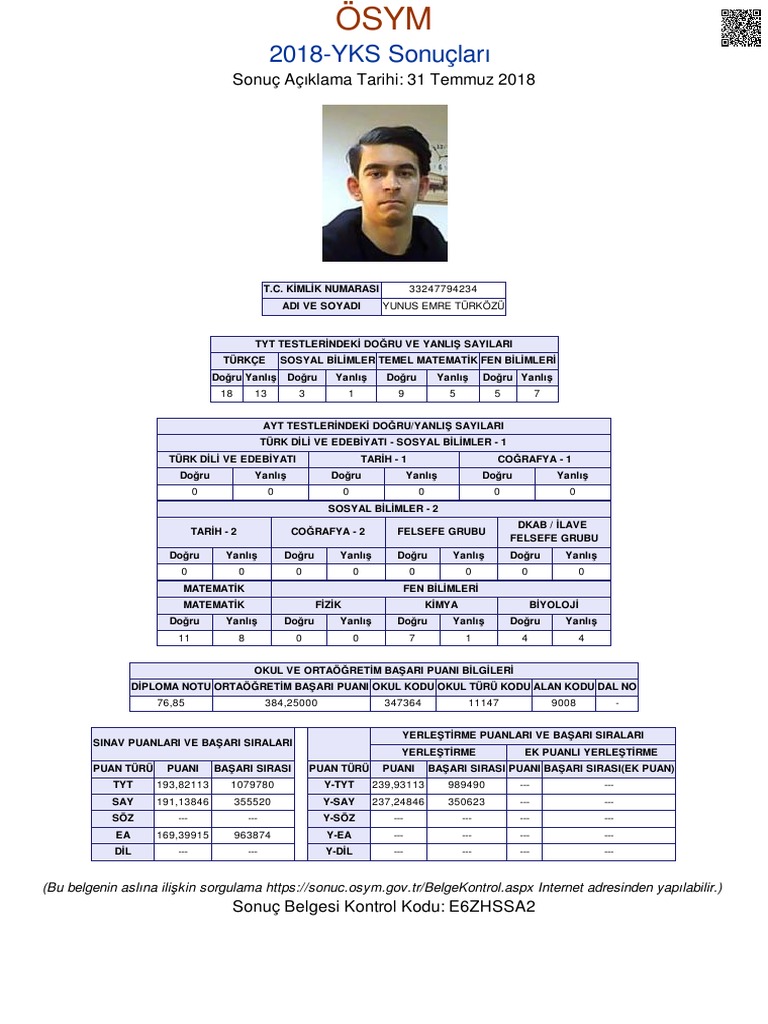 Ösym Sonuç Belgesi 2019 - Nuriye Kalkmazin Gercek Sonuc Belgesi Eklendi Guncel - Yerleştirme sonuç belgesi basılmayacak ve adayların adreslerine gönderilmeyecektir.