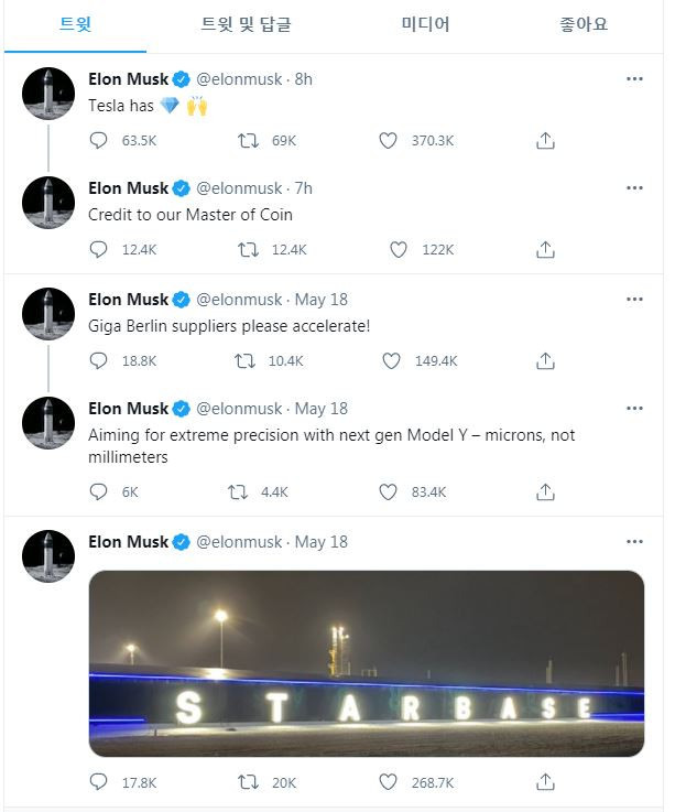 일론머스크 비트코인 : 머스크 한마디에 비트코인 또 급등.."채굴업자들과 대화했다" - 헉스 : 거래 금지 검토 소식에 가상화폐 가치 폭락.